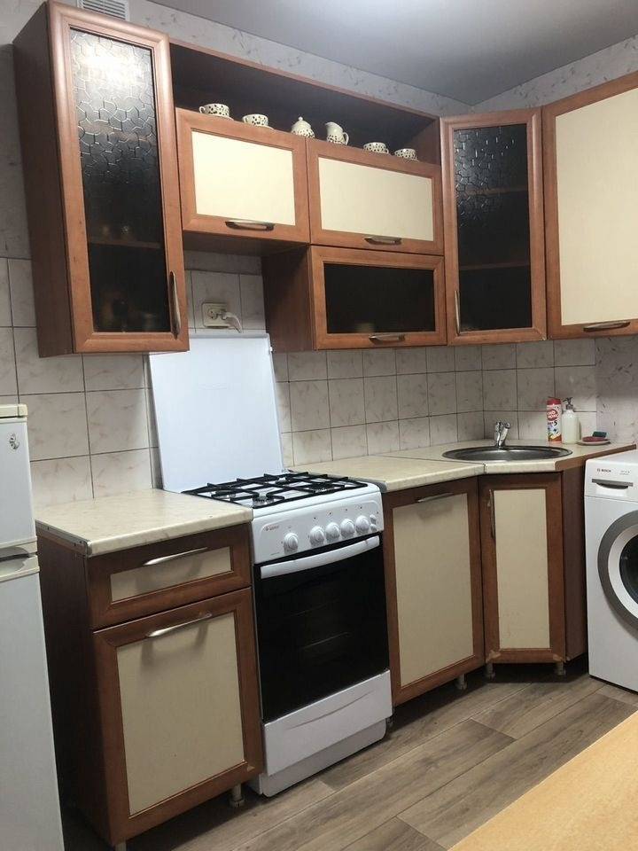 Жилая площадь составляет 19 квадратных метров, а кухня — 7 квадратных метров. В наличии холодильник, стиральная машина и телевизор. Из мебели — вместительный шкаф и удобный диван.